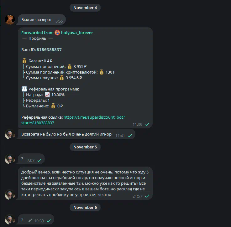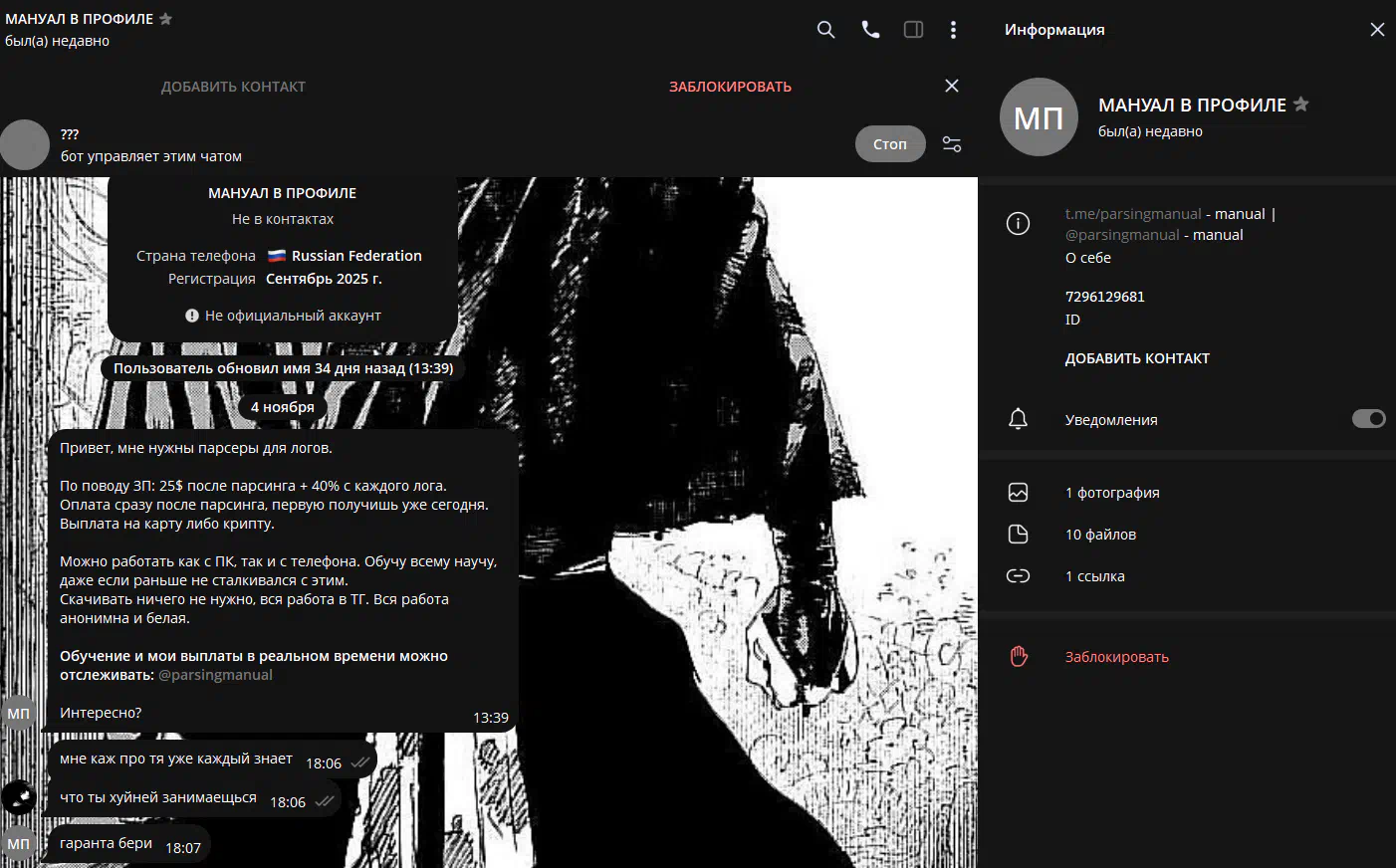 Cases in which scammers impersonate the arbitrators of the forum were more frequent by installing a similar username in Telegram. If the arbtir contacted you and asks to transfer money outside the forum, you need to immediately stop the dialogue with such a person, and continue it in the topic with a claim.