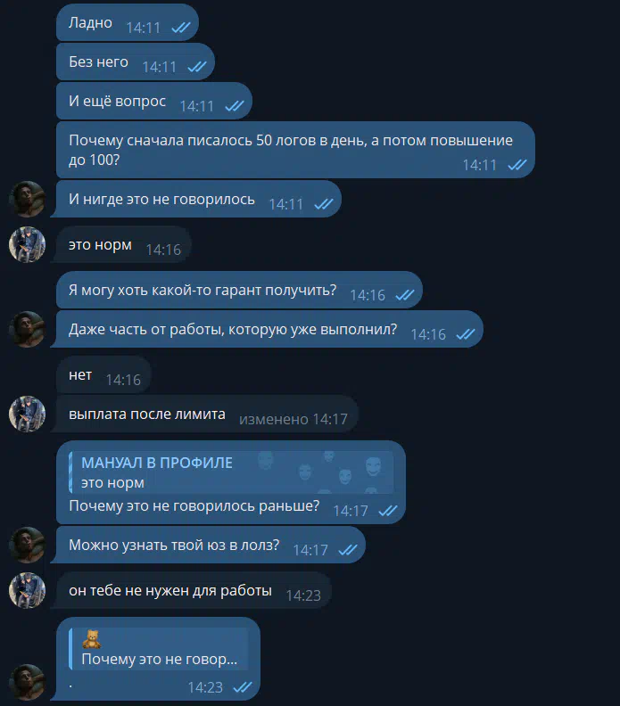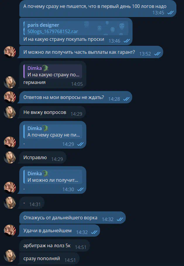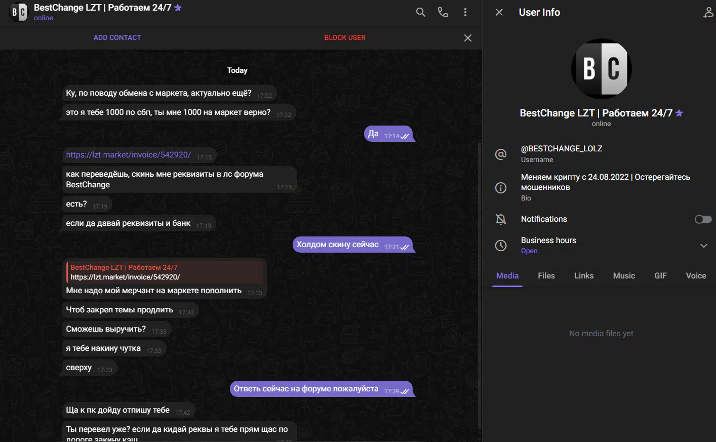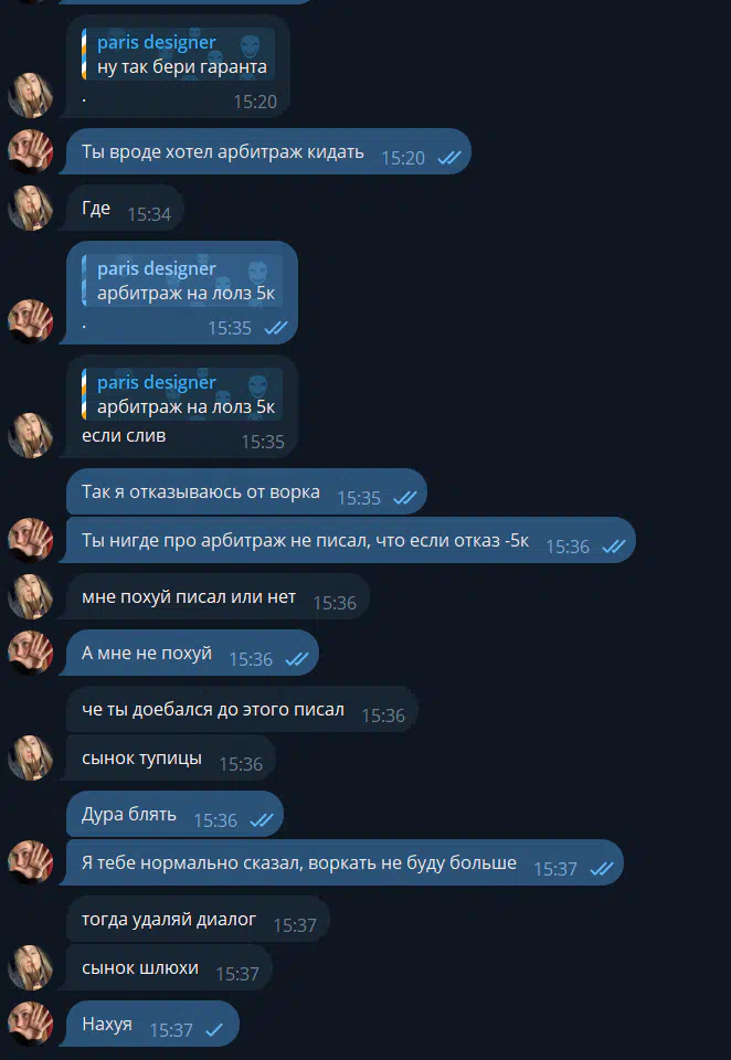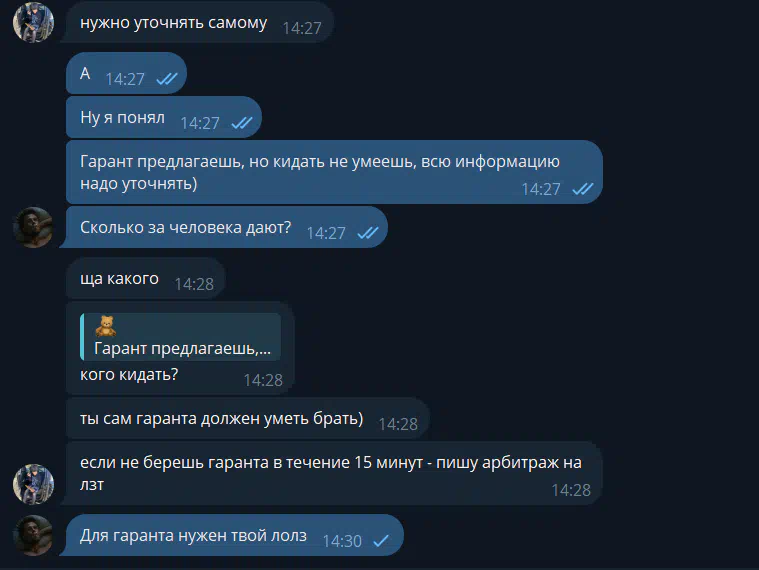 Cases in which scammers impersonate the arbitrators of the forum were more frequent by installing a similar username in Telegram. If the arbtir contacted you and asks to transfer money outside the forum, you need to immediately stop the dialogue with such a person, and continue it in the topic with a claim.