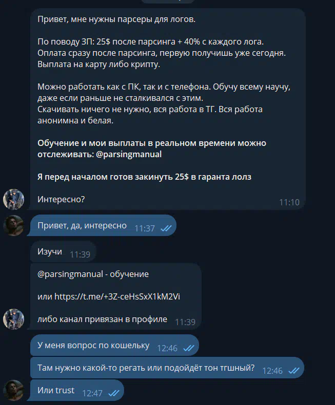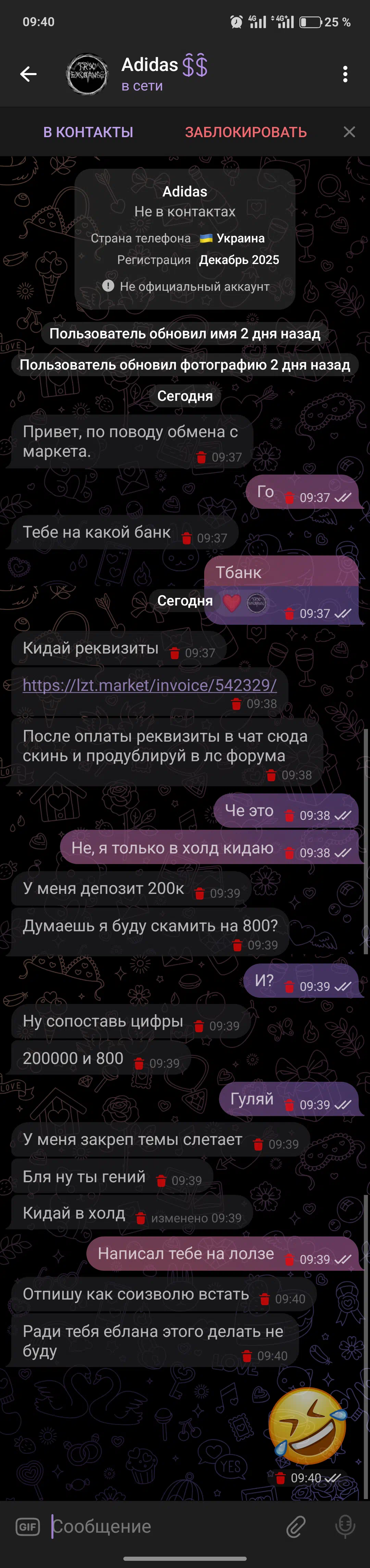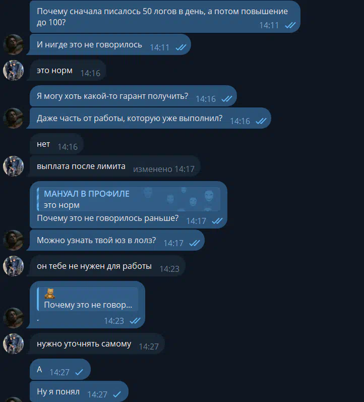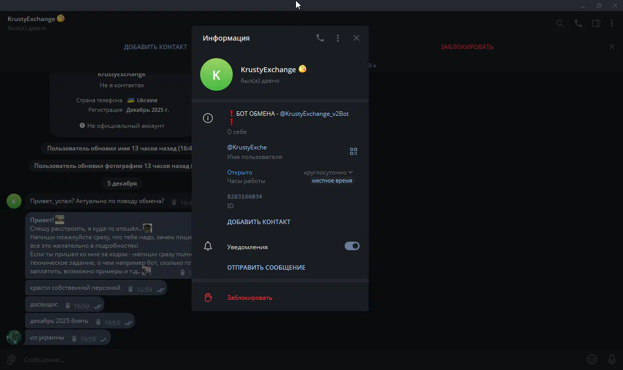 Cases in which scammers impersonate the arbitrators of the forum were more frequent by installing a similar username in Telegram. If the arbtir contacted you and asks to transfer money outside the forum, you need to immediately stop the dialogue with such a person, and continue it in the topic with a claim.