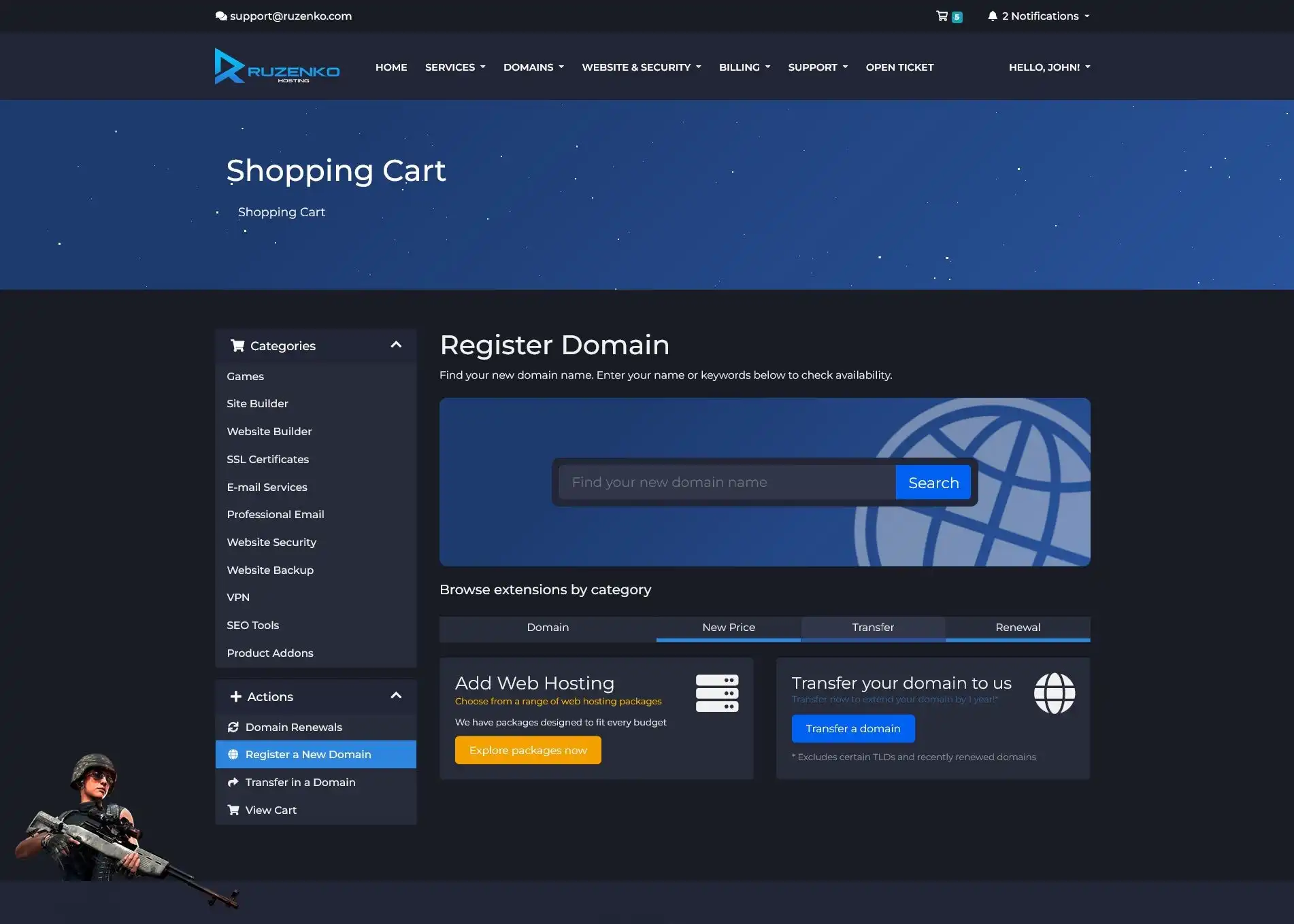• Редизайн главной страницы ClientArea