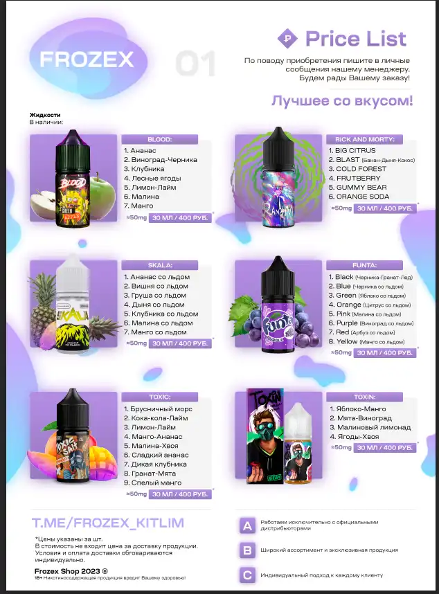 Sources of the price list for the Vape store