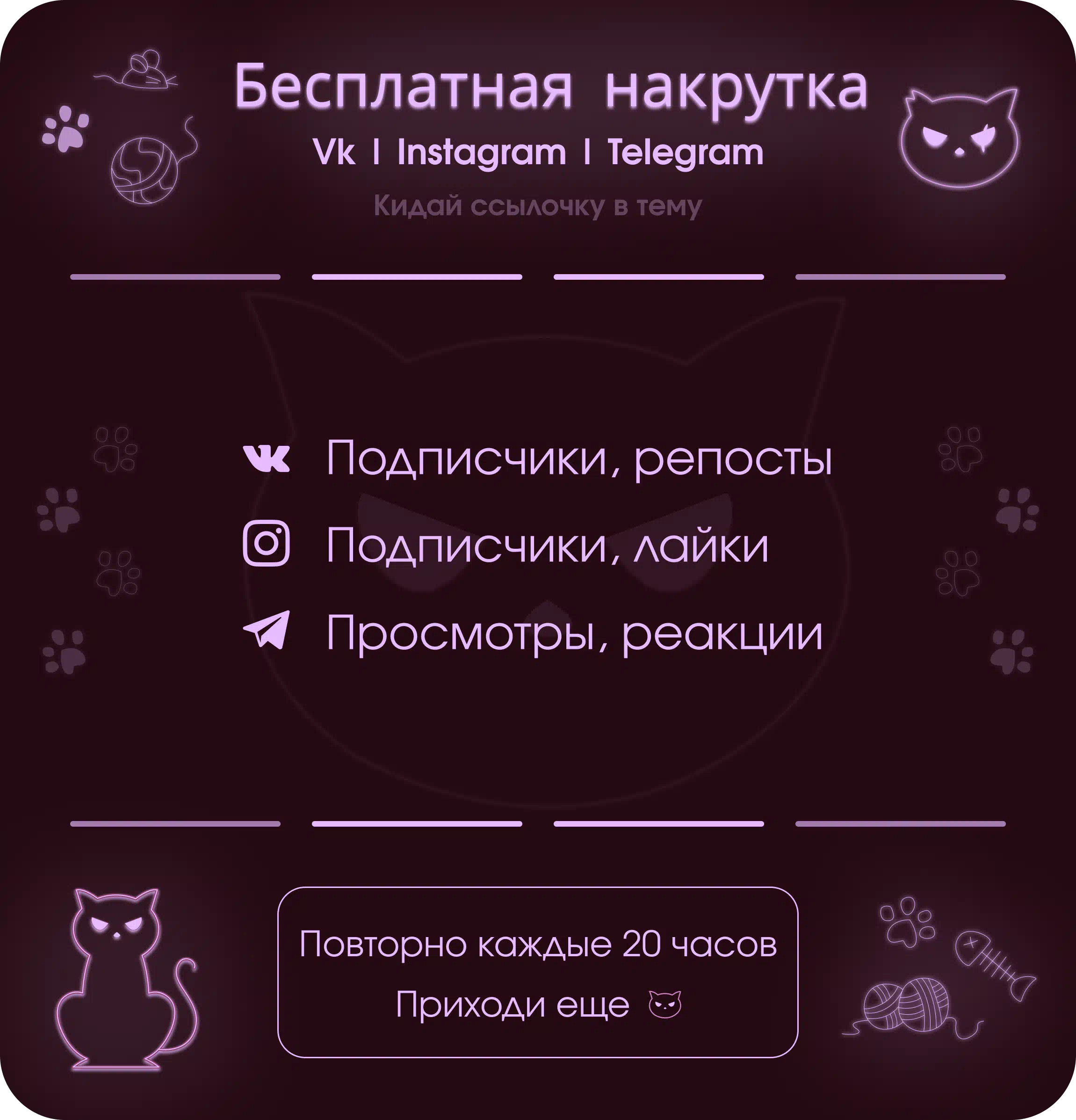 Cheat Insta Vk Telegram | Every 20 hours