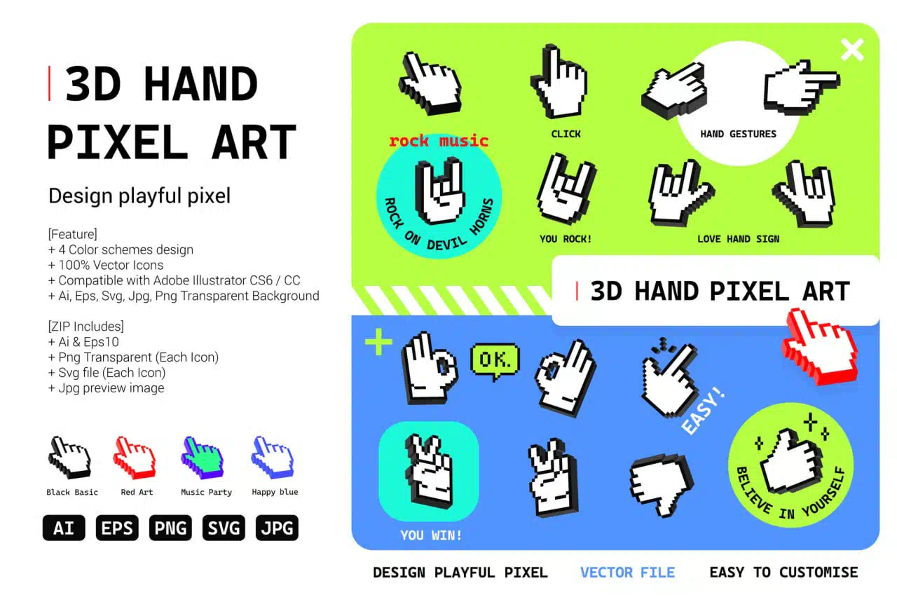3D Hand Pixel Art Icon Sticker