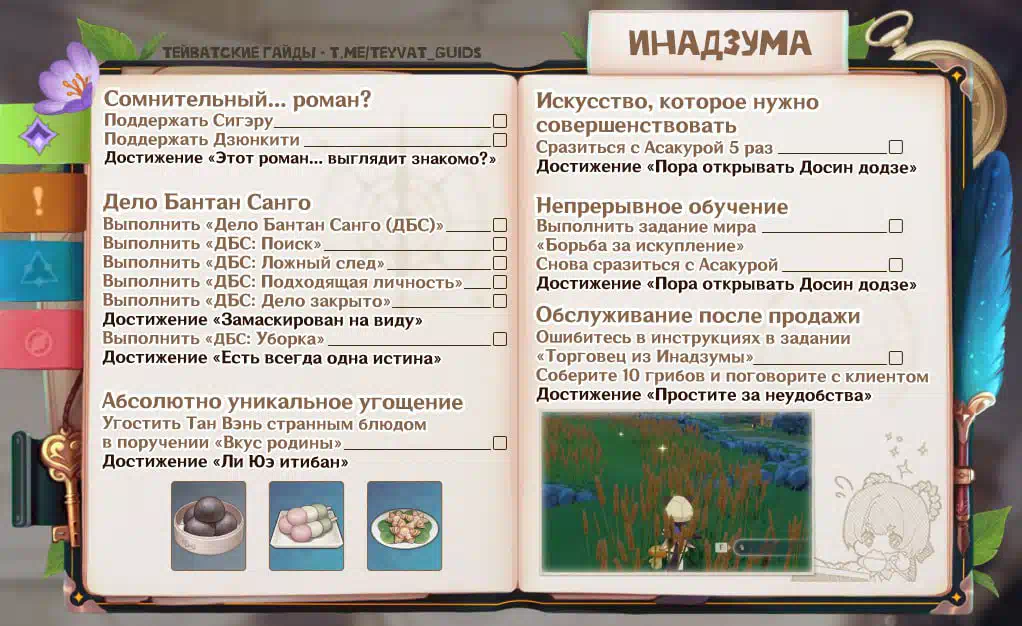 A checklist with daily tasks of the Inadzuma, for which you can get achievements.