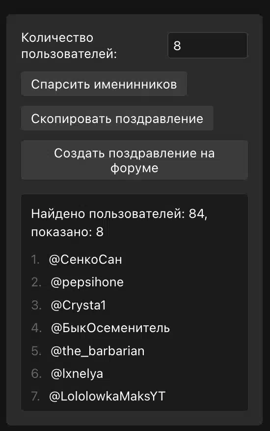 Парсер именинников и автоматическое создание темы в оффтопике с их поздравлением