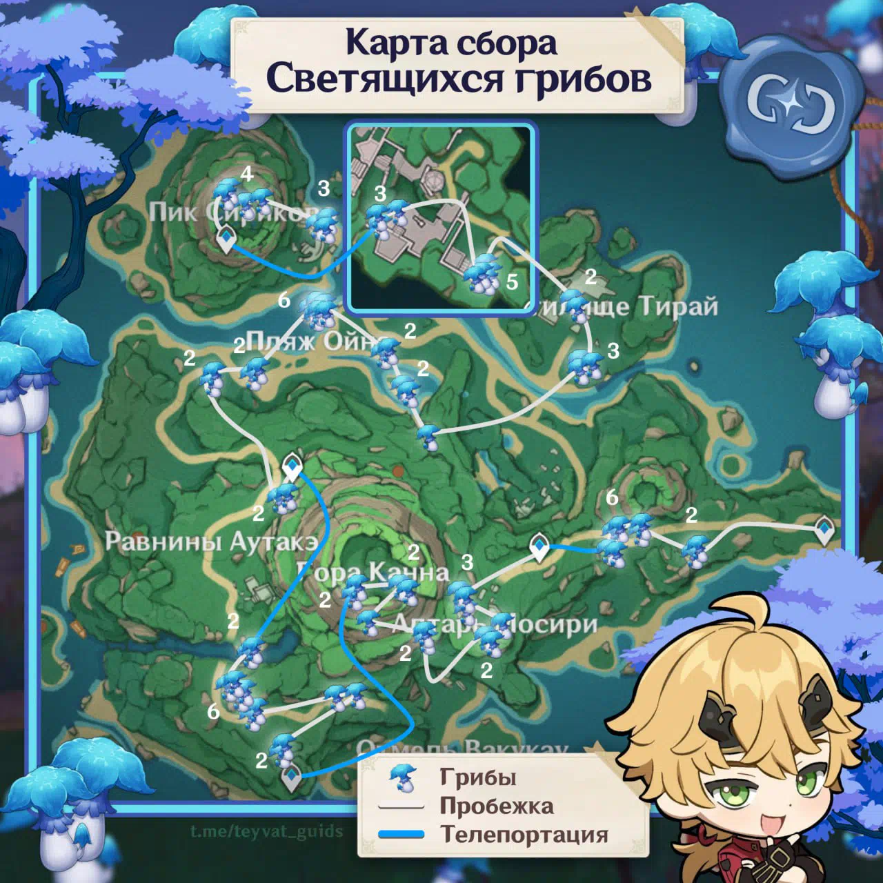 Route and remile for collecting luminous mushrooms necessary for elevation volumes