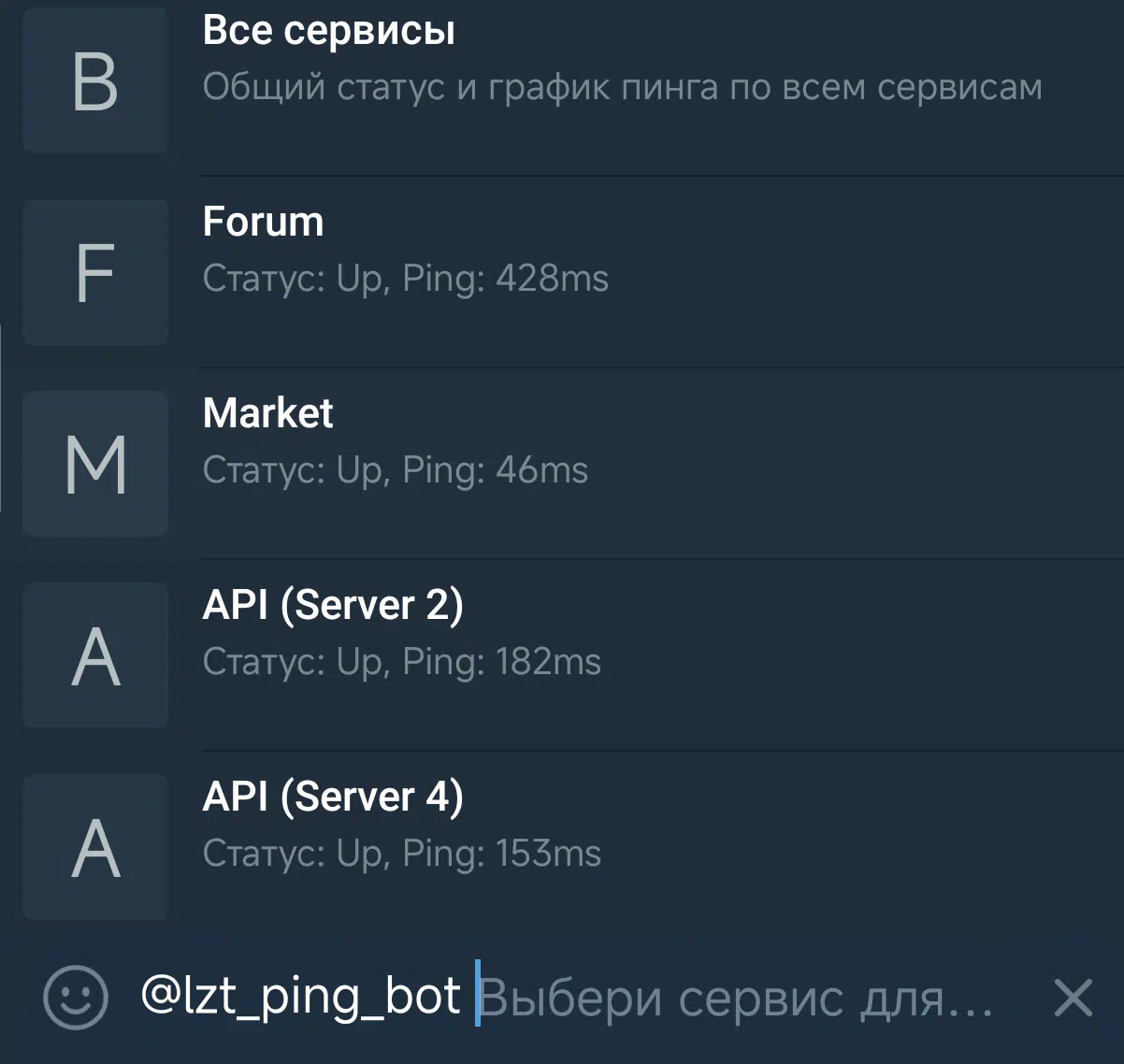 [Beta] lzt_ping_bot - Lolzteam server status in Inline Bot