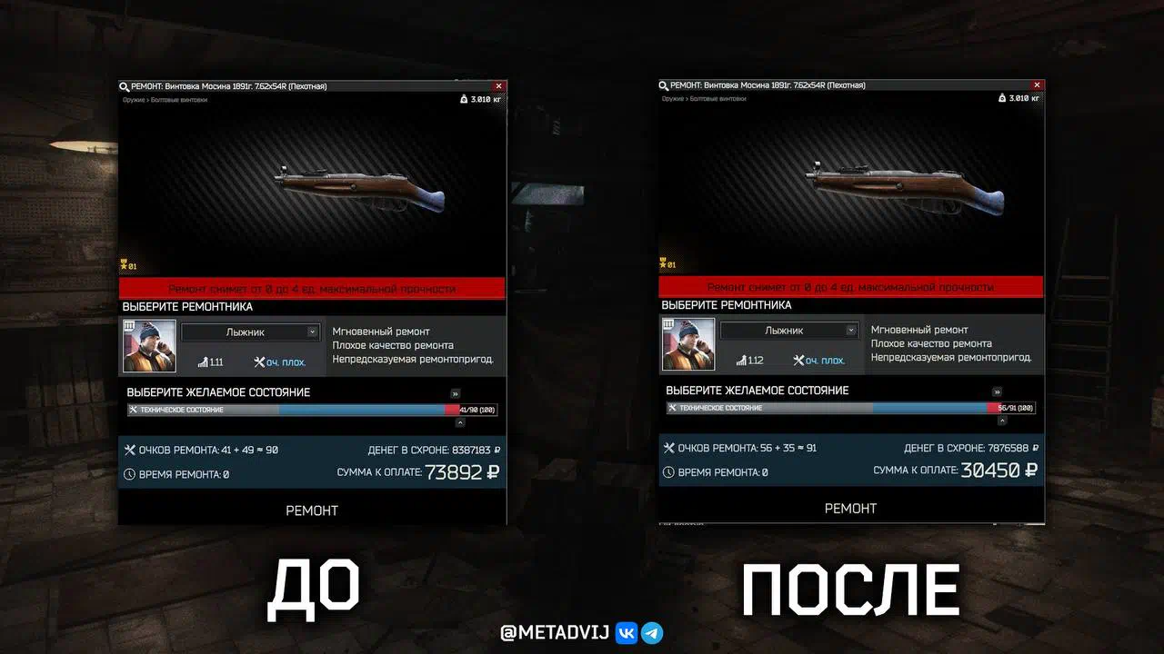 Changes in the cost of the repair "Mosin Rifle"
