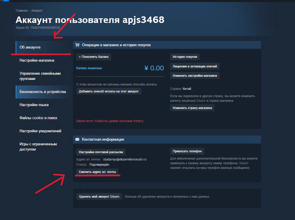 How to change mail in Steam? Tutor for the buyer