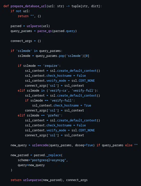 NAEBCOM, при каких обстоятельствах у тебя база данных не будет подключена? в таком случае ты либо запускаешь приложение, либо ****аешь его нахуй пока юзер не укажет ссылку на подключение так таблицы уже никто не создает, в новом sqlalchemy используются анотации питона