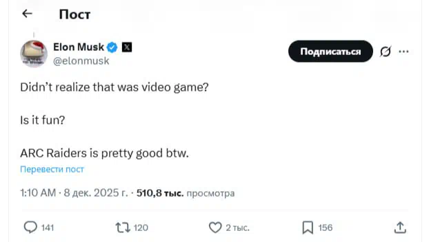 Elon Musk is already familiar with ARC Raiders