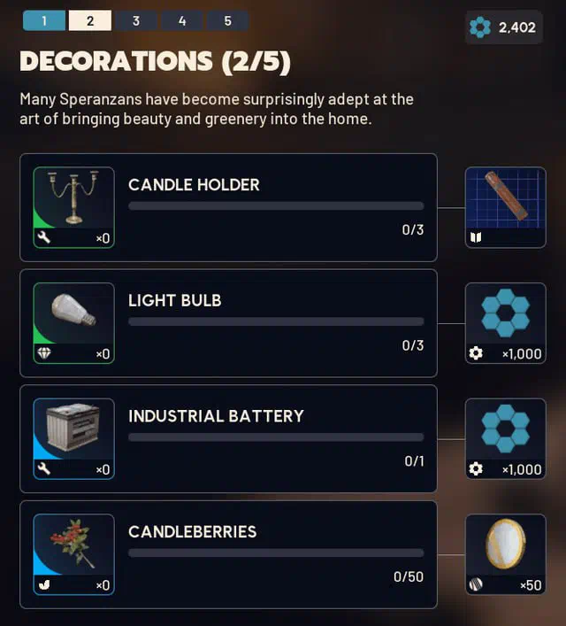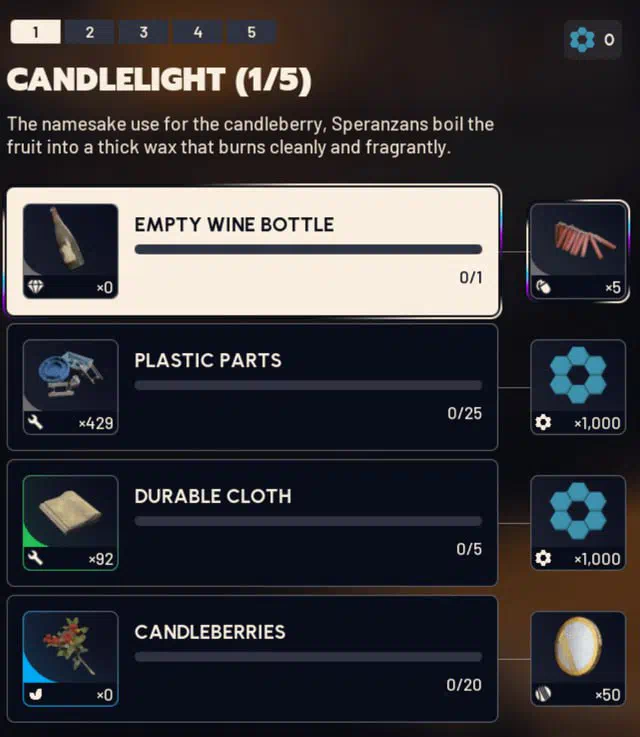 Requirements for all 5 levels of the Flickering Flame project.
