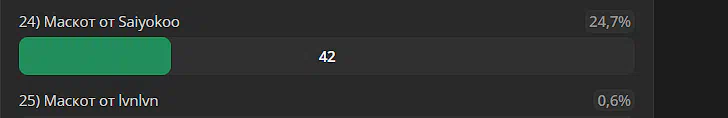 1 человек - 1 маскот, а версию уже при победе выбираем. То есть, например, у махуо 3 варианта, и там размазались голоса, а у с остальных один, и все в него втопили