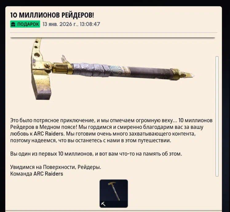 Также до 02:00 14.01.2026 (МСК) можно забрать золотую кирку!
