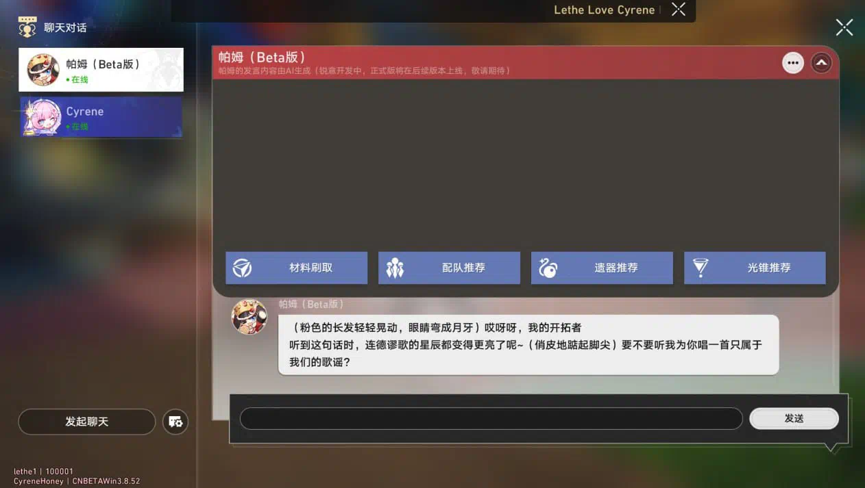 AI chat bot right in the game
