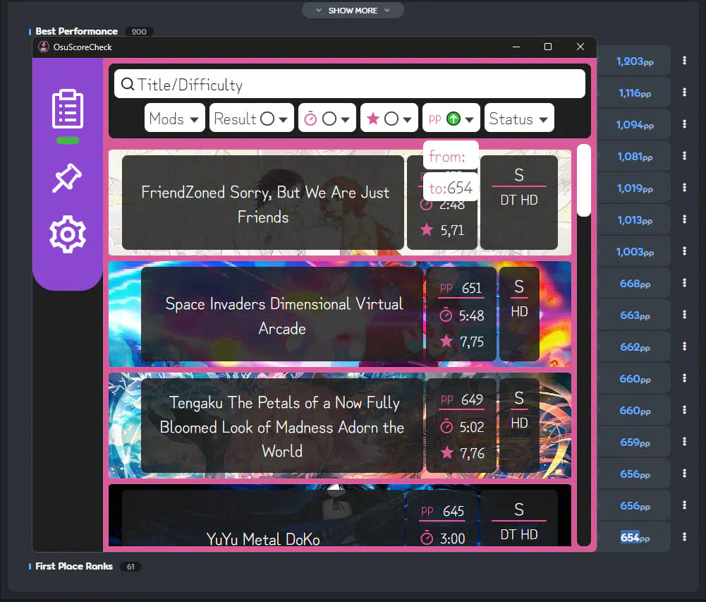 Application for analyzing PP scores in osu with full history download, including results outside the top 200