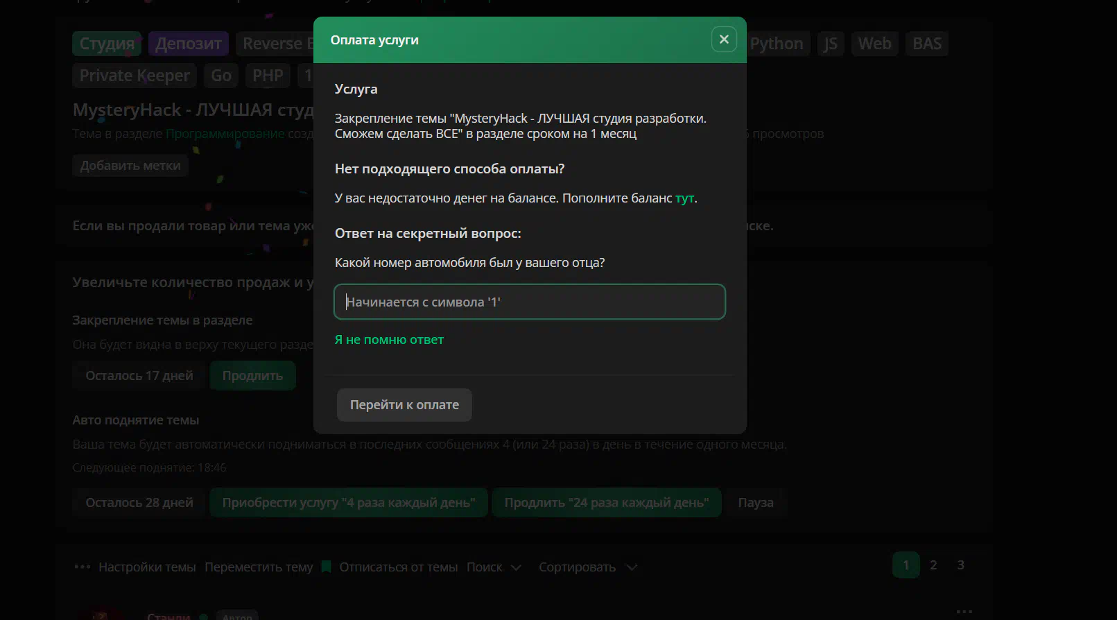 Write the cost of boosts (pinned/autoap) when you click on a service