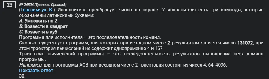 У меня ответ 68, а должен быть 32