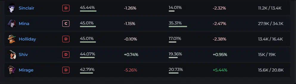 4.Mina: 45.01% WR;