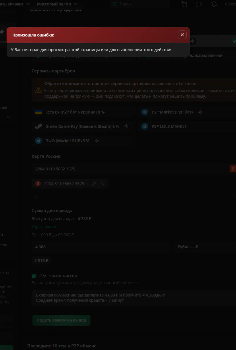 Error when withdrawing balance to RU card