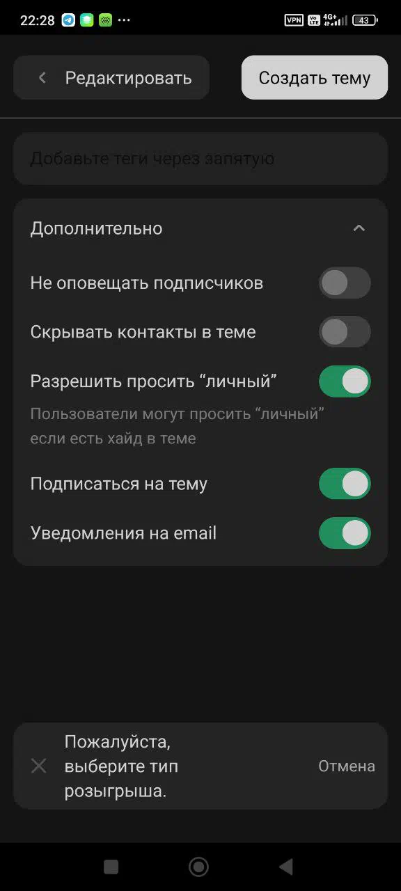 When I try to create a giveaway, I get an error about the type of giveaway