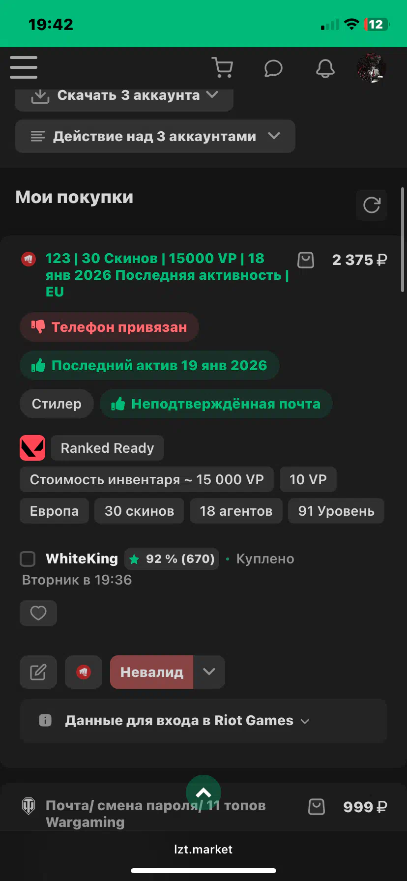 Claim against WhiteKing (RUB 2,375)