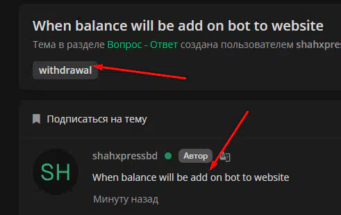 When balance will be add on bot to website