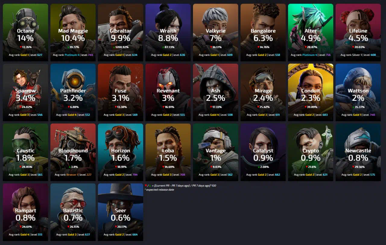 Legends pick rates for the first week of the 2nd split of Season 28