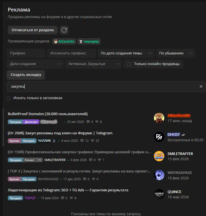 Where are the topics with advertising buyers?
