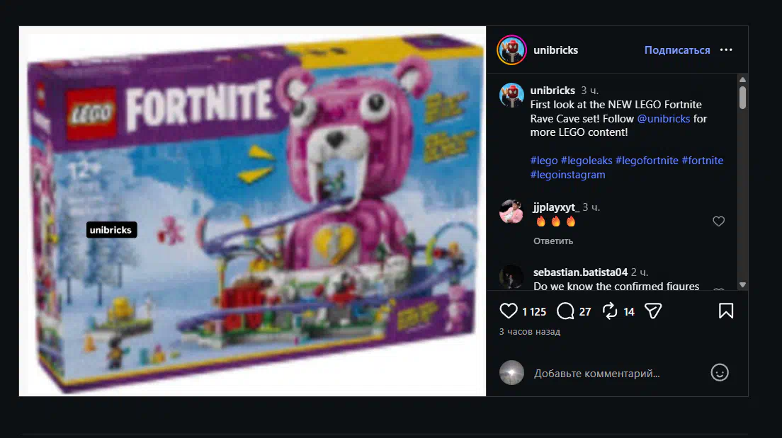 Ютубер «The UniBricks» известный утечками в сфере LEGO, опубликовал в своём Instagram пост с будущим набором по Fortnite, который должен выйти в августе этого года